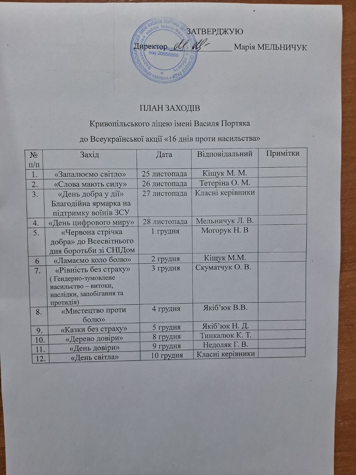 План заходів щодо протидії булінгу 2024-2025 н. р.